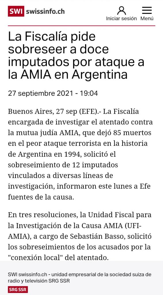 Si los documentos oficiales desmienten y no se ajustan a sus viejas teorías, los descartan. Esconden los papeles, dificultan su entrega y análisis. Bajo responsabilidad del Procurador y su Secretaría contra el terrorismo, la Fiscalía se está vaciando de objeto y personal para transformarse en un “observatorio” de los movimientos migratorios de los iraníes, al servicio del Mossad y el FBI. Hasta los jueces reconocen que el proceso judicial está en crisis . Las pocas novedades que hay vienen de nuestro aporte.